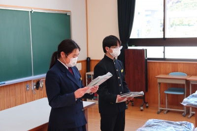 そして、生徒会執行部から中島中学校の学校生活について説明を行いました。